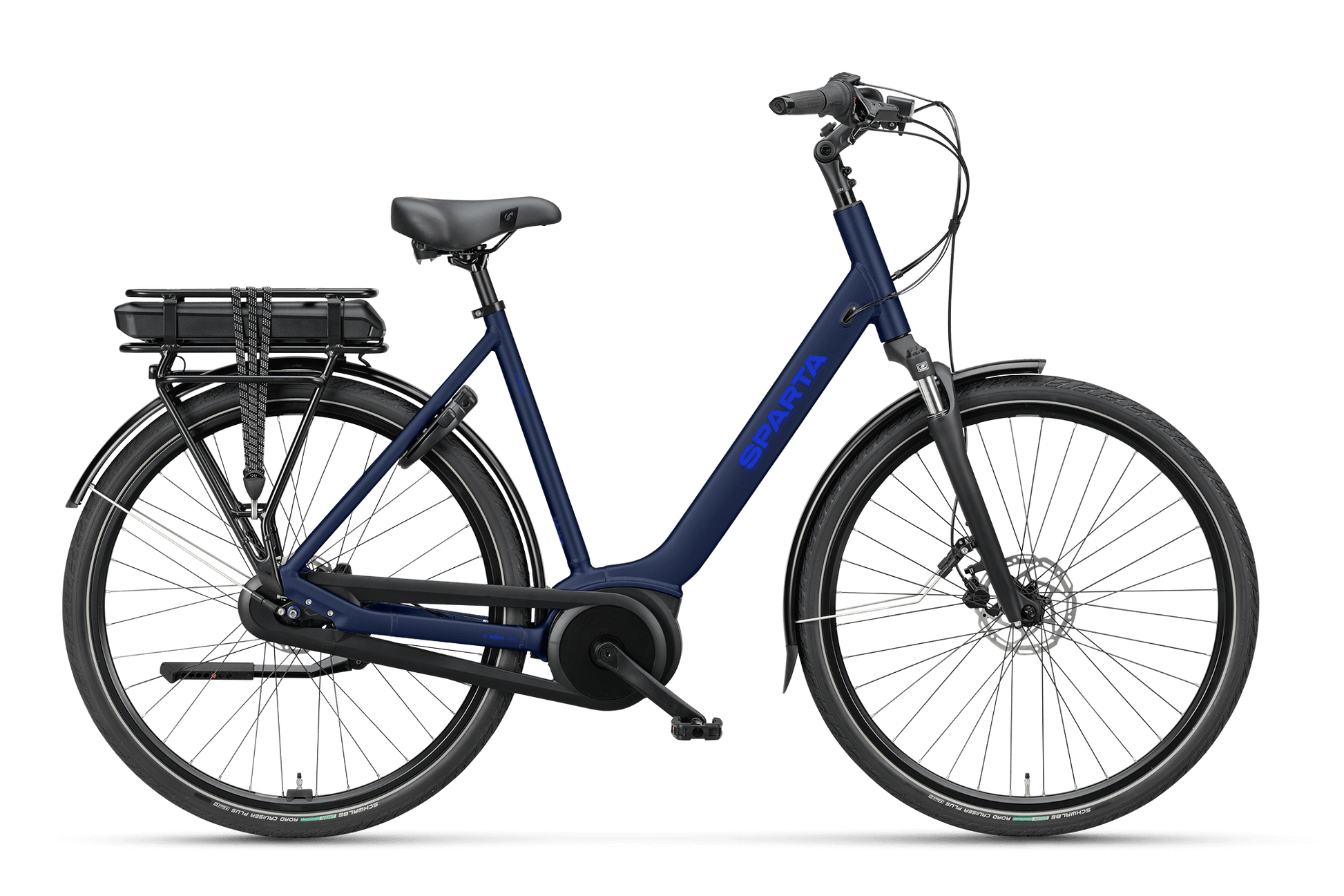 The SPARTA a-LANE FIT is the ideal e-bike for those seeking simplicity and functionality. Equipped with a powerful Bosch Active Line motor, this city bike offers a smooth ride through the city. The sleek design, wide tires, and suspension fork ensure a comfortable and enjoyable riding experience, while the handlebar light and SP-connect mount provide practical support for everyday use.